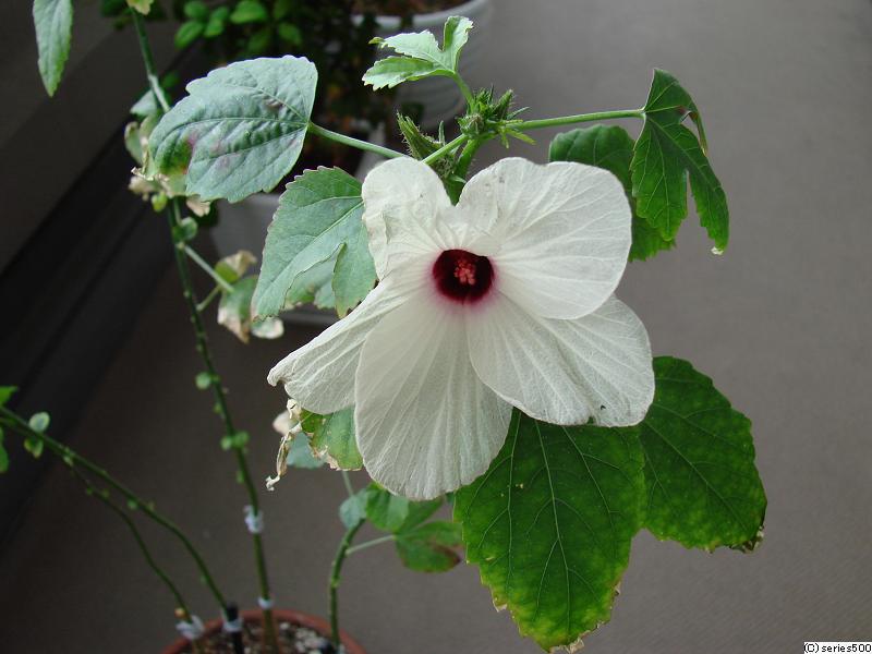 そうそう、一番始めに発芽していたケナフが開花しました。