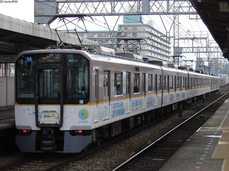 (1)直通運転開始のステッカーを貼っている近鉄9020系