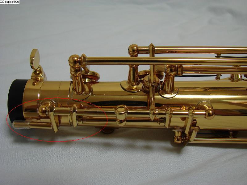 [赤い楕円で囲んだ部分が交換したオクターブキーの関連パーツ]