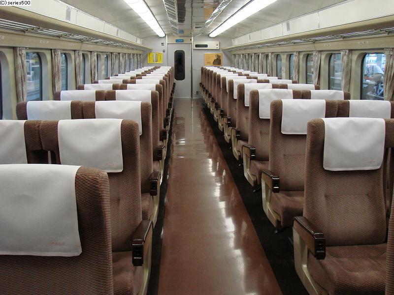 (02)0系[R68編成]の車内:2×2の座席だが、車両によって座席の色は不統一