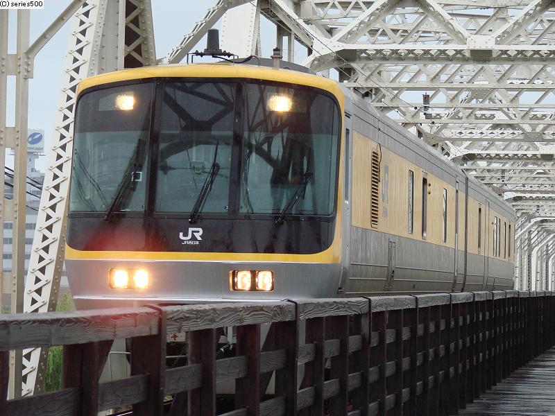 まずは、11時過ぎに城東貨物線の赤川仮橋を通るキヤ141系を迎え撃つ為、雨が降りしきる中を傘片手にサイクリングを敢行!