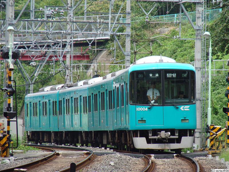 (左)交野線・宇治線で運用される10000系[4両編成]:交野線/私市駅にて