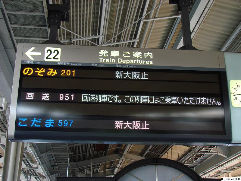 そうしていると、21番線から「のぞみ1号(500系)」が出て行ったころから以下の様な表示が!