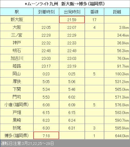 3月24日 02時02分 広島を発車。