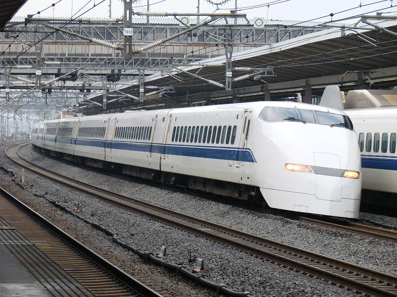 (右)500系 山陽区間を300km/hで走るJR西日本所有の車両。N700系の登場で(少なくとも)東海道からは姿を消す。