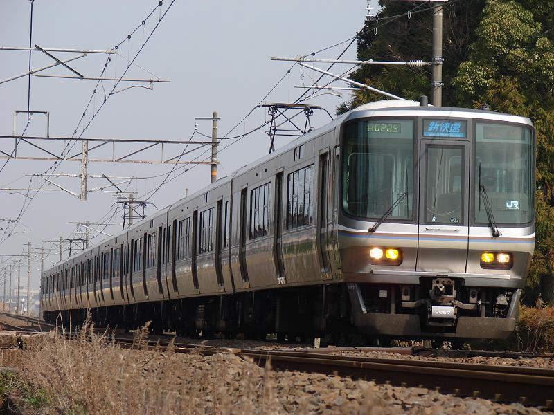 すると案外早く来たので拍子抜かれた感があったが、521系の前に来た223系の2本を撮って、ここも退散。