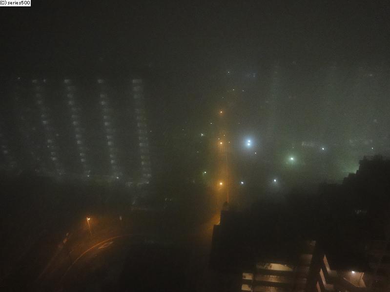 昨晩、1時30分くらいに外の様子を見てみると、濃霧で視界が殆どありませんでした。
