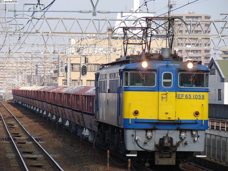 しかも、その後にやってきた無蓋車の列車は、JR貨物の発足時に試験塗装として独特の塗装を施され、現在まで残存していることから、「その機関車の行くところ、常に人あり。」な状態が続くEF65-1059が牽引していました。