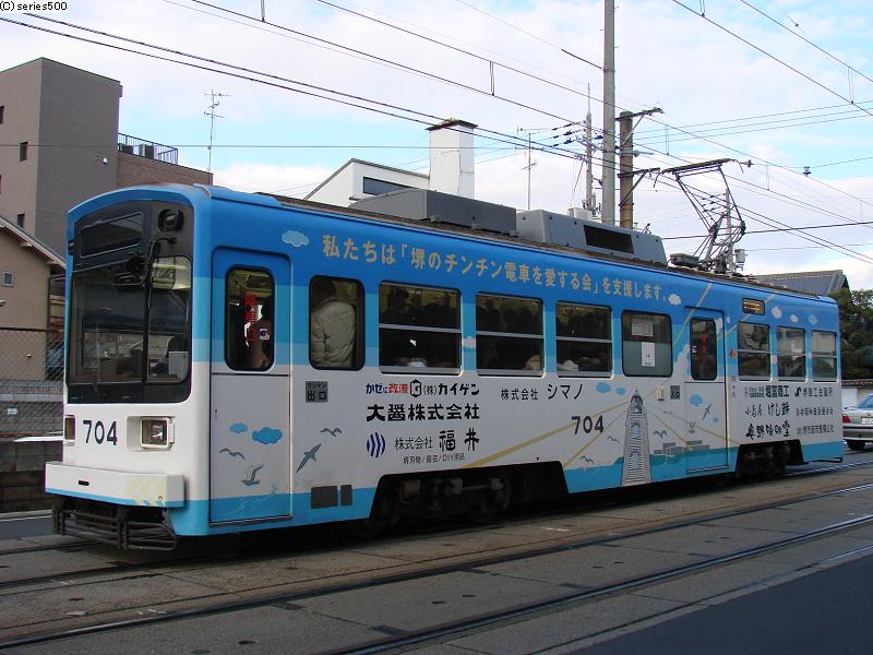 (2)神ノ木駅を発車した阪堺モ161形(モ165):なんと1928年製の超老兵