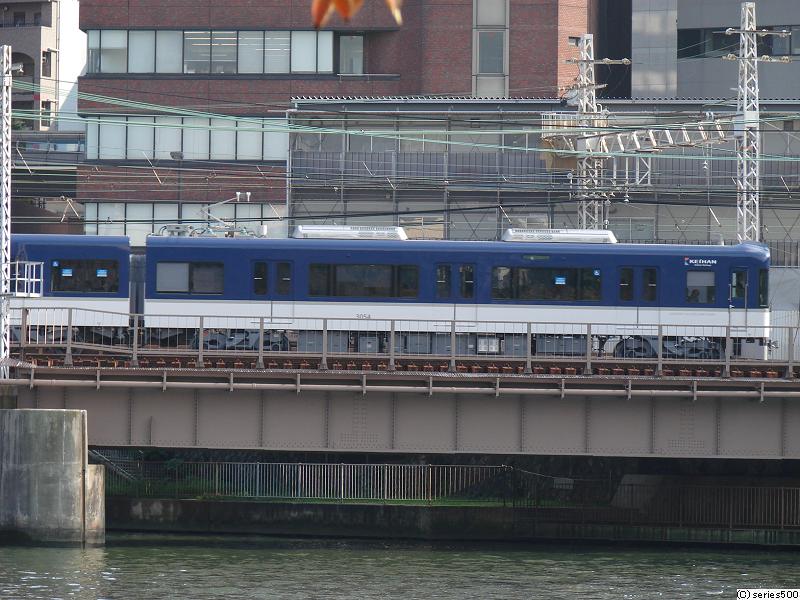 そして、2日前に開業した京阪・中之島線の新型車両3000系の様子を見るため、造幣局の近くから川を渡る京阪の観察を開始。