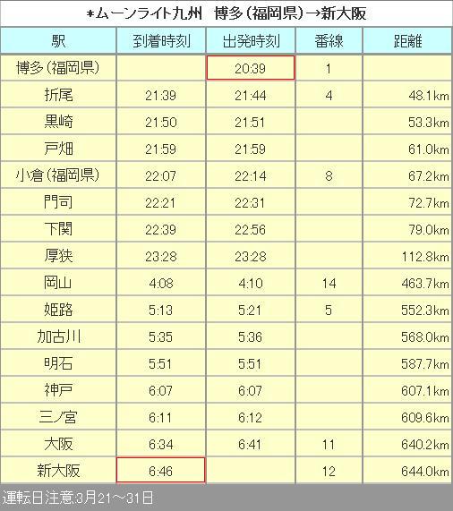 3月24日 02時02分 広島を発車。