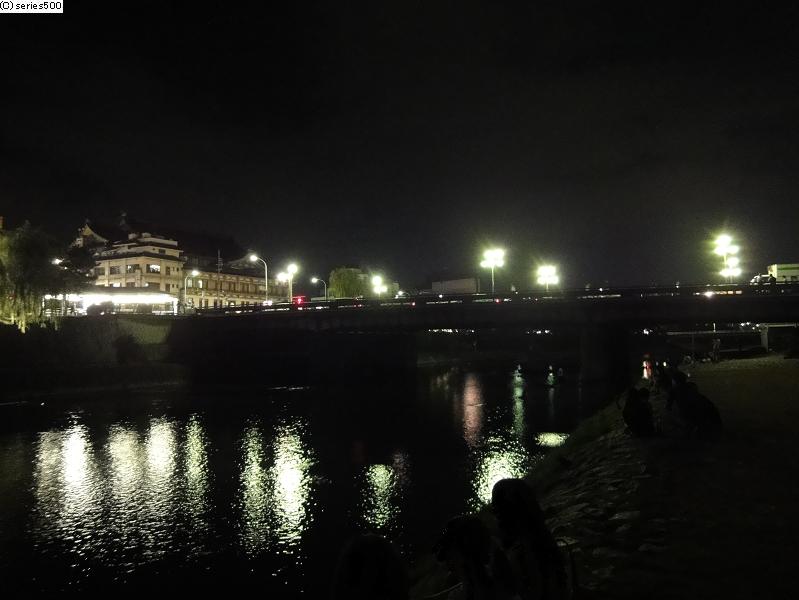 で、0時に2軒目(練習を含むと3軒目)を後にして鴨川沿いを四条方面に歩きます。